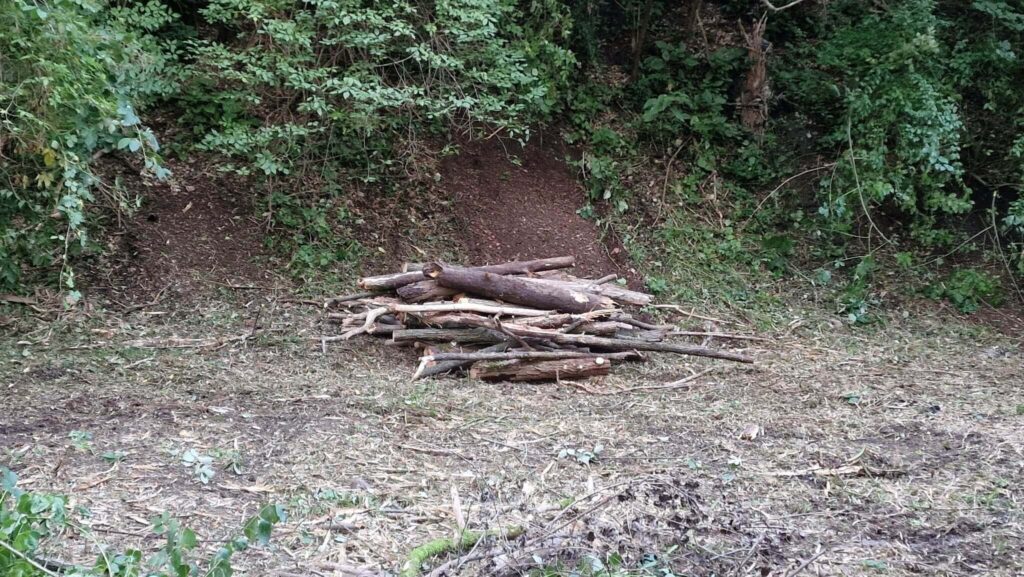 "We'll just mow a bit along the way. It'll be nice." Well, that's how it starts. First, cutting the grass along the path, then cutting back the blackberries that were encroaching on the path, then just a narrow strip right next to the road... And now the wider area of woodland next to the future City of Acrobats is being landscaped.