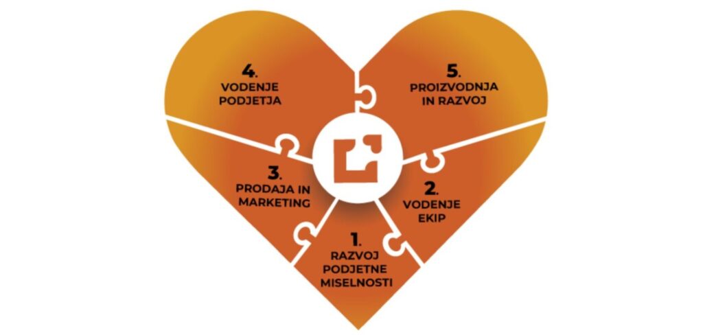 Kot odgovor na vse to smo sestavili izobraževalni program MOZAIK PODJETNOSTI, ki korak za korakom vodi od ideje do uspešnega podjetja. Ključna znanja iz praks podajo uspešni podjetniki, k temu se pa doda še teorijo. Sestavljen je iz petih sklopov: