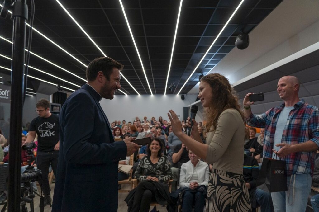Nekaj ujetih utrinkov z dogodka ZGODBE AKROBATOV z Urošem Slakom: Martin Golob in Aleš Belšak, Abel von Rust